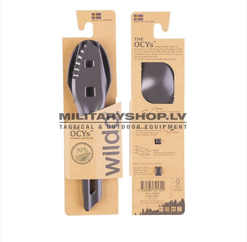 The OCYs splits up into a sharp knife, a fork with good grip and an extendable spoon. It stacks as a unit for easy packing and storage in your pack. The OCYs fits neatly in the original WILDO Camp-A-Box Basic and Light.