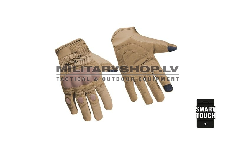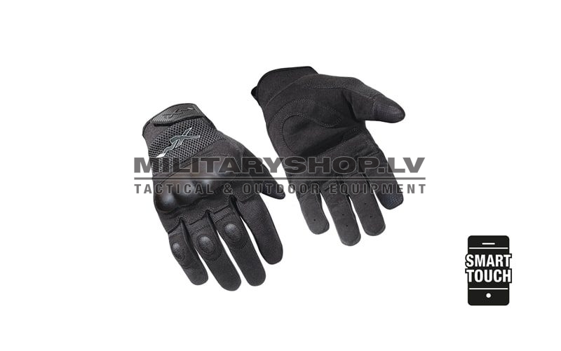 The WX DURTAC with advanced SmartTouch technology is a flame-resistant tactical glove designed to protect the hands of military and SWAT team members during forcible entry and high-risk operations. A one-piece knuckle guard molded with dense thermoplastic protects the back of the hand and the palm padding absorbs impact to reduce hand fatigue in the field. The molded knuckles give you secure protection when operating in buildings or in your tactical vehicle around sharp edges. Impact-absorbing knuckle protection is welded to the glove and delivers flexible protection against impact injuries and skin abrasions. When handling lethal and non-lethal explosives, military and SWAT team members are protected by flame-resistant Nomex. The WX DURTAC leather palm maintains connectivity in the field with touchscreen capable technology in the palm of your hand. The low wrist design gives you a very flexible feel when operating in small places or around your plate carrier. Clip-strap for easy storage and portability.